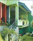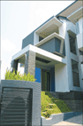 Gunakan material yang tahan air, seperti batu kali pada area bawah. Ruang tamu terletak “melayang” di atas garasi, untuk menghindari ancaman banjir menerjang. Jangan lupakan area penghijauan di halaman, meski berada di atas batas jalan. Lengkapi dengan pengolahan lansekap, meski berada di atas batas jalan.