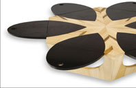 Diawali dari ketertarikan kepada mandolin sebagai sebuah instrumen musik tradisional, pemikiran visualisasi coff ee table ini tercipta. Selanjutnya, keunikan penampilan instrumen musik ini dibawa menjadi sebuah inspirasi dan analogi bentuk, untuk dirancang menjadi coff ee table. Coff ee table dangan karakter kayu yang ‘glam’ ditampilkan melalui pemilihan spesies kayu American Ash yang memiliki karakter tekstur serat kayu lurus, daya tahan yang baik, serta warna light. Bentuknya yang tipis memberikan kesan ringan terhadap bidang yang luas. Selain itu, elemen lingkaran lubang yang memperkuat sisi bentuk instrumen mandolin, memberikan aksen tersendiri pada ‘top’ coff ee table ini. ini dibawa menjadi sebuah inspirasi dan analogi bentuk, untuk dirancang menjadi coff ee table. Coff ee table dangan karakter kayu yang ‘glam’ ditampilkan melalui pemilihan spesies kayu American Ash yang memiliki karakter tekstur serat kayu lurus, daya tahan yang baik, serta warna light. Bentuknya yang tipis memberikan kesan ringan terhadap bidang yang luas. Selain itu, elemen lingkaran lubang yang memperkuat sisi bentuk instrumen mandolin, memberikan aksen tersendiri pada ‘top’ coff ee table ini.