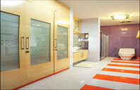 - Pilihan model pintu lemari : swing, folding (lipat) dan sliding (geser). Pintu folding memungkinkan isi lemari terlihat lebih lega. Pintu sliding tepat untuk ruang sempit dan terbatas. Untuk lemari bentuk menyudut (Ll shape), salah satu pintu bisa menggunakan pintu swing dengan engsel 180º supaya lebih lega.