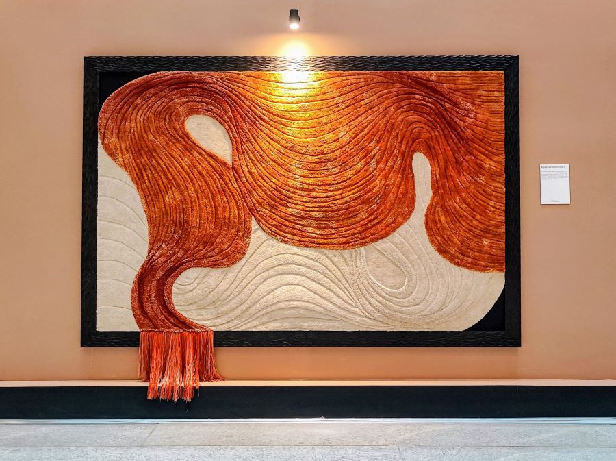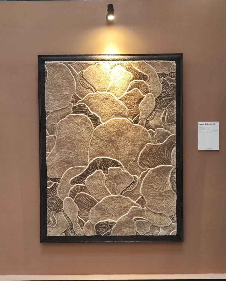 Sejalan dengan waktu, teknik hand tufted carpet juga mengalami perkembangan dan menjadi semakin tinggi kualitas craftmanshipnya. Dalam pameran ini mayoritas material yang digunakan adalah wool dan mix viscose yang selama ini menjadi favorit dari klien Moire.