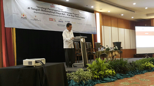 Seminar Strategi Penanganan Pembiayaan Sektor Properti di Tengah Melemahnya Daya Beli : Kiat Bagi Pelaku Usaha berlangsung di Hotel Sahid Jakarta, Kamis 17 Juli 2017, merupakan kerjasama dari GMT Institute bekerjasama dengan Marx & Co dan didukung oleh Kamar Dagang dan Industri Indonesia. Dalam kesempatan ini, hadir beberapa narasumber diantaranya adalah Ketua Umum Kadin Indonesia, Direktur Bank Jatim, Perwakilan REI dan Managing Partner dari Marx & Co.