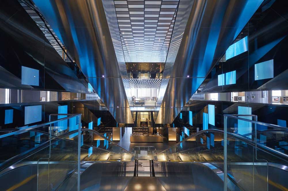 “Berada ditengah kota Jakarta, di tengah cahaya dan kebisingan pusat kota, inspirasi dari desain kantor pusat TOTO adalah kejernihan air. Kami ingin menciptakan pengalaman yang mengingatkan peran air bersih pada kehidupan sehari-hari. Dari pintu masuknya sudah terpancar warna identitas perusahaan yaitu biru dengan konsep light from water reflecting the city. Untuk desain dari dinding eskalator yang menghubungkan ke lantai showroom mengekspresikan cahaya dari air mengalir, light from flowing water dan design dari showroom TOTO dengan konsep light from a quiet pond,” tambah Yuta Shimada, Designer, Field Four Design Office.
