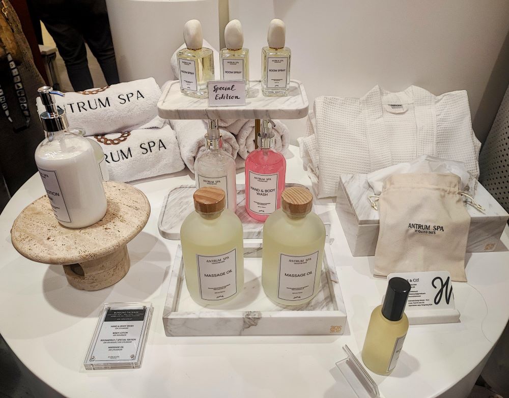 Untuk menyempurnakan pengalaman spa, Antrum Spa menawarkan rangkaian produk spa eksklusifnya, yang dibuat khusus dengan bahan-bahan alami terbaik dan menampilkan aroma gaharu, lavender, dan bergamot yang mempesona. Produk-produk ini memungkinkan pengunjung untuk melanjutkan perjalanan spa gua Sardinia, memastikan bahwa relaksasi bertahan lama setelah kunjungan.