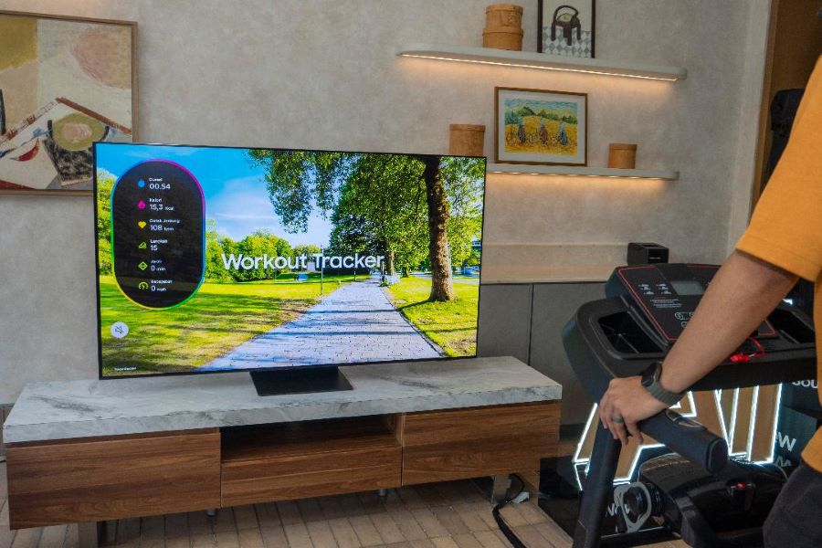Semakin banyak konsumen yang konsisten berolahraga bahkan melakukannya di rumah saja. Samsung OLED TV dilengkapi dengan Workout Tracker yang bisa memberikan penggunanya berbagai macam jenis exercise ditemani virtual coach lengkap dengan data latihan Anda yang dapat dilihat secara langsung dalam satu layar. Pengguna bisa memantau progress latihan seperti durasi, kalori yang terbakar, dan detak jantung secara langsung berdasarkan perangkat latihan yang terkoneksi sambil menonton konten TV dalam satu layar selama sesi latihan. Dengan ini, Anda bisa mengikuti video instruktur yoga sebagai virtual coach ataupun lari di treadmill sambil mengitari kota Bali secara virtual di TV. Samsung OLED TV memiliki opsi layar 55 inci, 65 inci, dan 77 inci, membuat Anda puas memantau progress olahraga di layar yang luas.