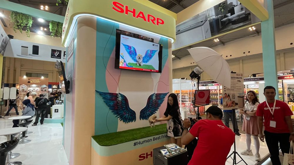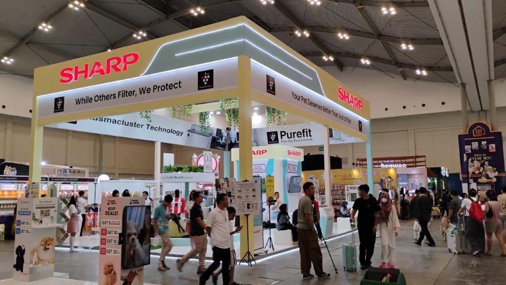 Booth Sharp hadir di International Pet Expo 2025 di ICE BSD area Hall 5 Booth A05, Sharp menawarkan berbagai promo menarik selama pameran berlangsung, seperti cashback e wallet hingga Rp 900.000 untuk setiap pembelian produk air purifier / Dehumidifier Sharp selama acara, Car purifier untuk pembelian unit tertentu, Flash Sale di jam tertentu setiap harinya, lelang produk Air Purifier, Cicilan 0%: Nikmati cicilan 0% untuk pembelian semua produk Sharp, serta AI Pawfect Photo Booth untuk mengabadikan momen manis bersama hewan peliharaan,