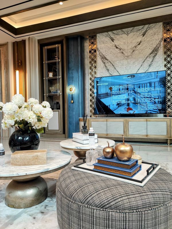 Penggunaan marmer menampilkan kemegahan, juga 3D wall treatment yang artistik hinga railing custome yang menyatukan fungsi dan estetika.