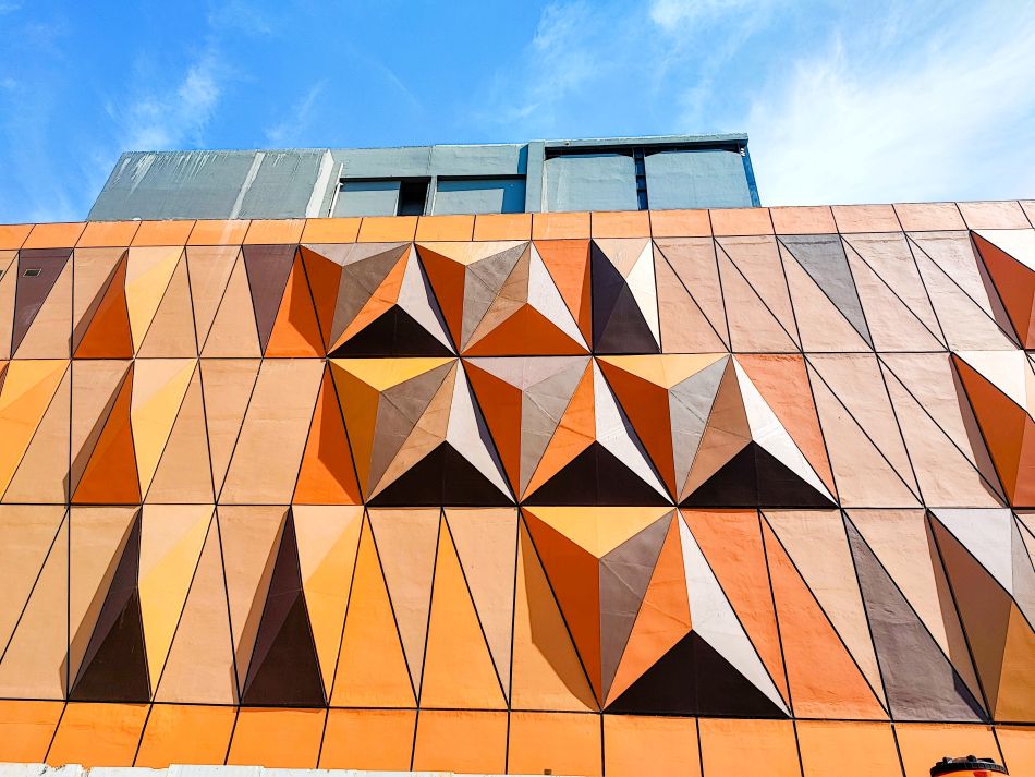 Kombinasi bidang segitiga maju-mundur pada fasad bukan sekadar hiasan, namun juga berfungsi sebagai self-shading, menciptakan bayangan bangunan yang melindungi pengunjung dari sengatan matahari pesisir. Bangunan ini juga menawarkan pengalaman yang kaya dengan total delapan fasad yang dimilikinya. Empat sisi luar (Utara, Selatan, Barat, Timur) dan empat sisi dalam yang langsung menghadap ke area open space.