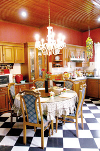 Untuk member i kesan keakraban yang total, interior rumah pun diberi warna hangat merah sehingga terbentuk kesan enclosed space. Penerapan warna ini diterapkan pada sebagian besar ruang, terutama ruang keluarga, ruang makan dan ruang menuju kamar tidur. Sementara, untuk ruangan tidur pemberian warna interior lebih dibebaskan kepada masing-masing kepribadian anggota penghuninya. Tak ayal lagi pemberian warna yang terkesan berani ini memberikan kehangatan tersendiri pada keluarga besar yang rumahnya kerap diramaikan oleh 14 cucunya.